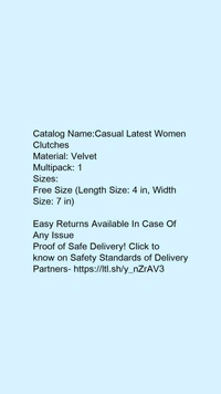 Catalog Name:*Casual Latest Women Clutches*Material: VelvetMultipack: 1