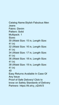 Catalog Name:*Casual Trendy Men Jeans*Fabric: CottonPattern: Solid,Dyed/WashedMultipack: 1