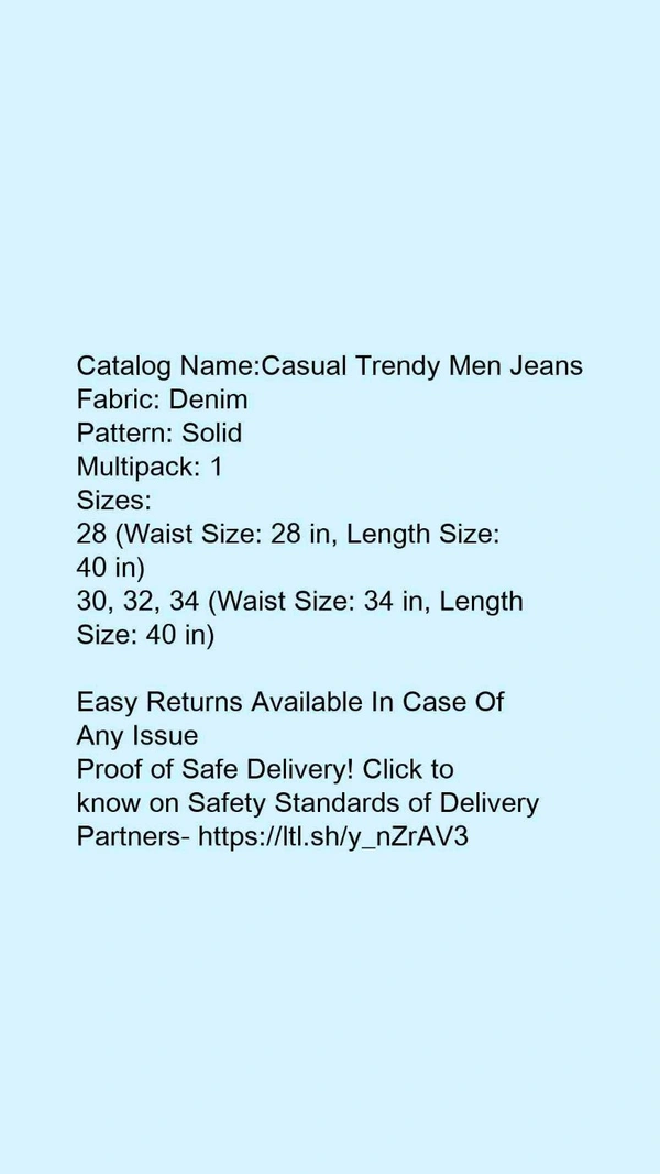 Catalog Name:*Casual Trendy Men Jeans*Fabric: DenimPattern: SolidMultipack: 1