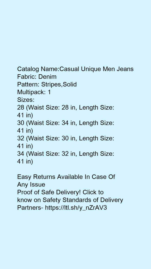 Catalog Name:*Casual Unique Men Jeans*Fabric: DenimPattern: Stripes,SolidMultipack: 1