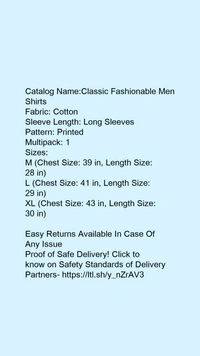 Catalog Name:*Classic Fashionable Men Shirts*Fabric: CottonSleeve Length: Long SleevesPattern: PrintedMultipack: 1