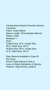 Catalog Name:*Classic Feminine Women Jumpsuits*Fabric: Cotton BlendSleeve Length: Three-Quarter SleevesPattern: SolidMultipack: 1
