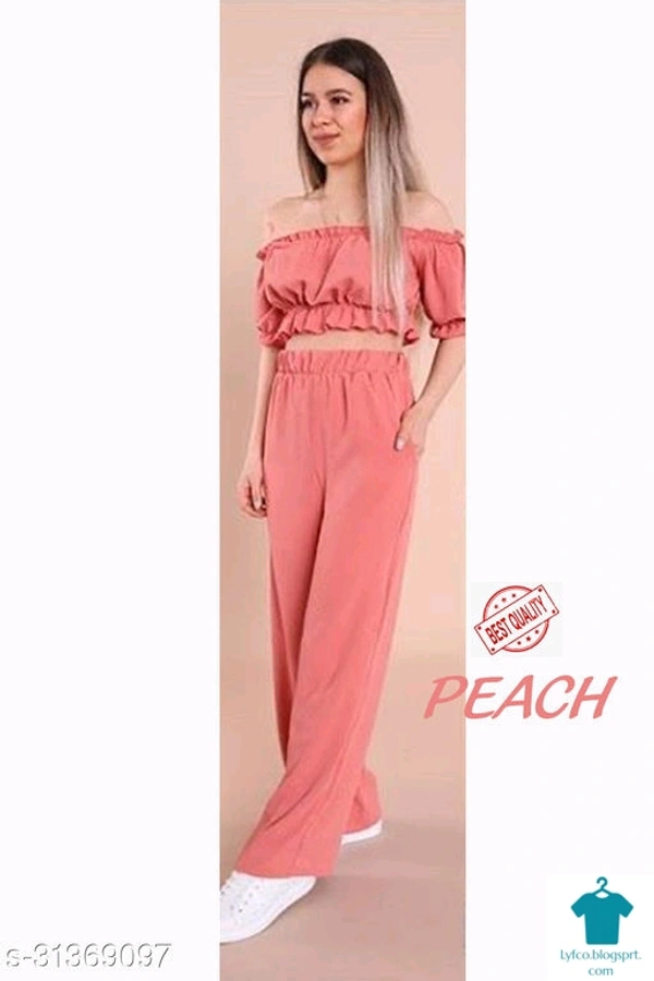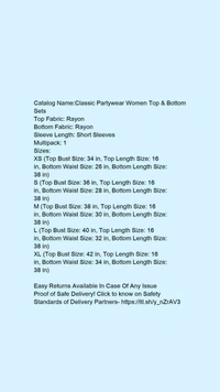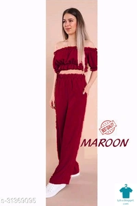Catalog Name:*Classic Partywear Women Top & Bottom Sets*Top Fabric: RayonBottom Fabric: RayonSleeve Length: Short SleevesMultipack: 1