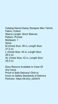 Catalog Name:*Classy Designer Men Tshirts*Fabric: CottonSleeve Length: Short SleevesPattern: PrintedMultipack: 1