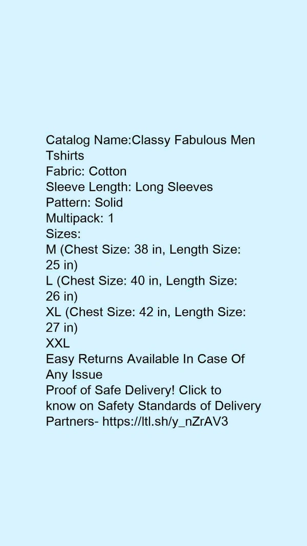 Catalog Name:*Classy Fabulous Men Tshirts*Fabric: CottonSleeve Length: Long SleevesPattern: SolidMultipack: 1