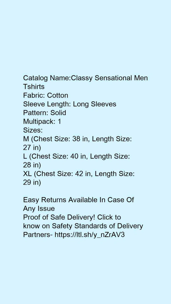 Catalog Name:*Classy Sensational Men Tshirts*Fabric: CottonSleeve Length: Long SleevesPattern: SolidMultipack: 1