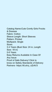 Catalog Name:*Cute Comfy Girls Frocks & Dresses*Fabric: CottonSleeve Length: Short SleevesPattern: PrintedMultipack: Single