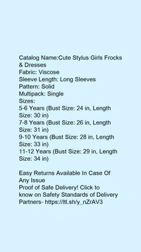 Catalog Name:*Cute Stylus Girls Frocks & Dresses*Fabric: ViscoseSleeve Length: Long SleevesPattern: SolidMultipack: Single