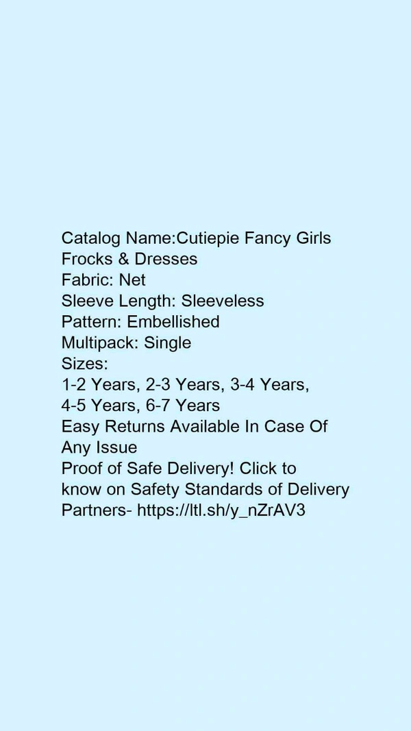 Catalog Name:*Cutiepie Fancy Girls Frocks & Dresses*Fabric: NetSleeve Length: SleevelessPattern: EmbellishedMultipack: Single