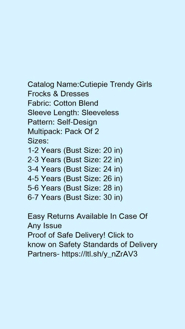 Catalog Name:*Cutiepie Trendy Girls Frocks & Dresses*Fabric: Cotton BlendSleeve Length: SleevelessPattern: Self-DesignMultipack: Pack Of 2