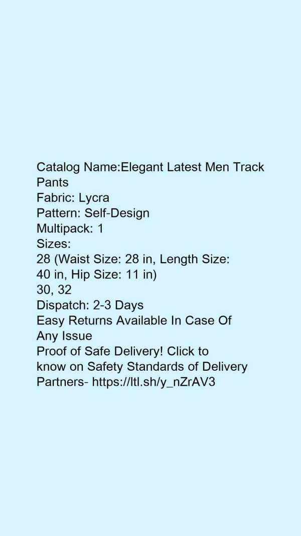Catalog Name:*Elegant Latest Men Track Pants*Fabric: LycraPattern: Self-DesignMultipack: 1