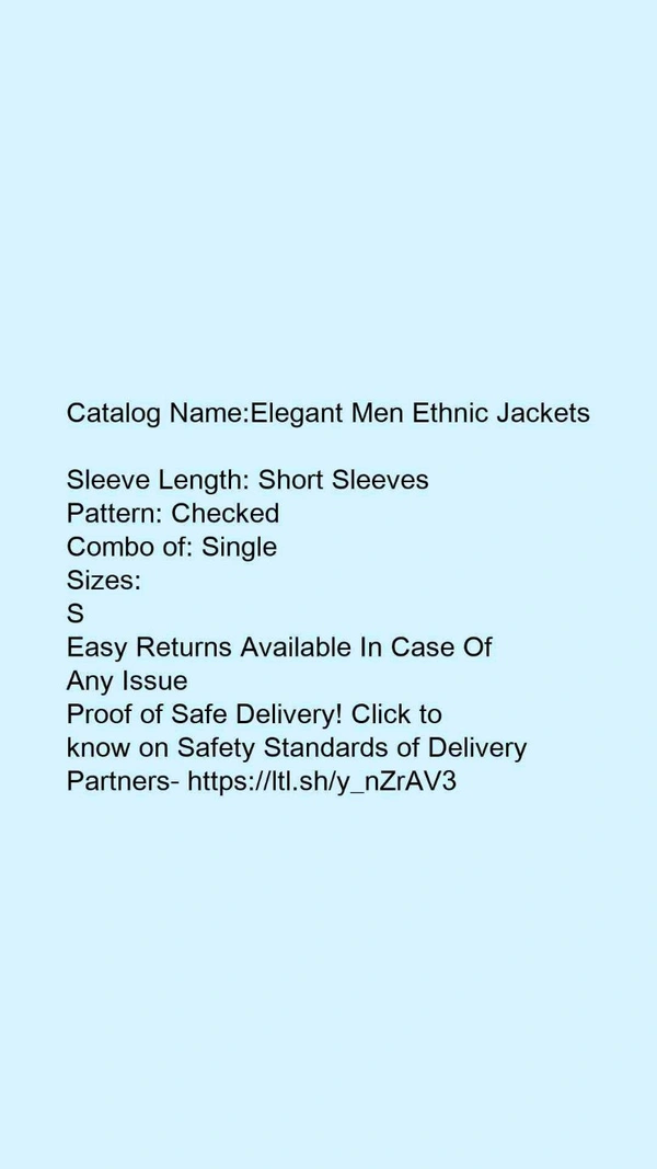 Catalog Name:*Elegant Men Ethnic Jackets*Sleeve Length: Short SleevesPattern: CheckedCombo of: Single