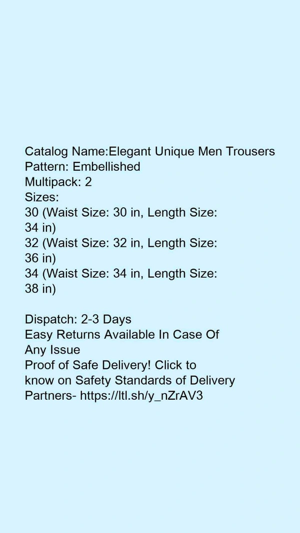 Catalog Name:*Elegant Unique Men Trousers*Pattern: EmbellishedMultipack: 2