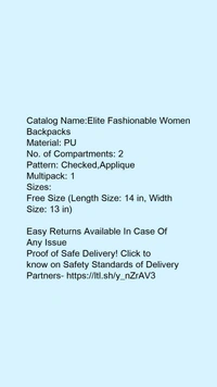 Catalog Name:*Elite Fashionable Women Backpacks*Material: PUNo. of Compartments: 2Pattern: Checked,AppliqueMultipack: 1