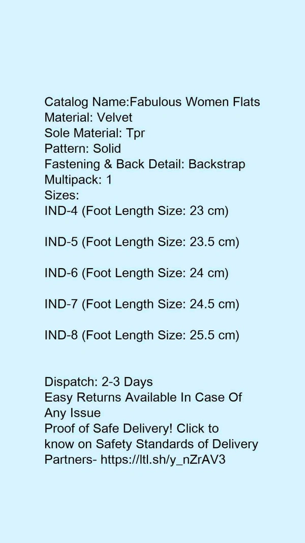 Catalog Name:*Fabulous Women Flats*Material: VelvetSole Material: TprPattern: SolidFastening & Back Detail: BackstrapMultipack: 1