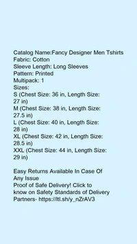 Catalog Name:*Fancy Designer Men Tshirts*Fabric: CottonSleeve Length: Long SleevesPattern: PrintedMultipack: 1