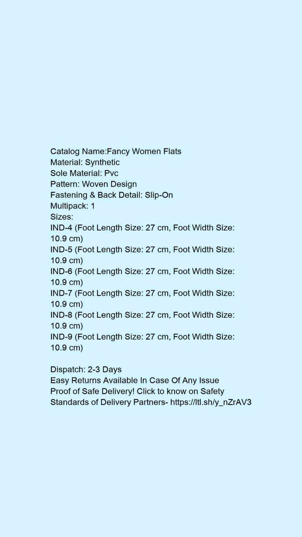 Catalog Name:*Fancy Women Flats*Material: SyntheticSole Material: PvcPattern: Woven DesignFastening & Back Detail: Slip-OnMultipack: 1