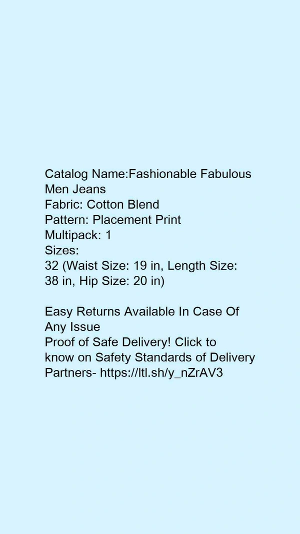 Catalog Name:*Fashionable Fabulous Men Jeans*Fabric: Cotton BlendPattern: Placement PrintMultipack: 1