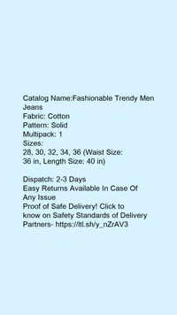 Catalog Name:*Fashionable Trendy Men Jeans*Fabric: CottonPattern: SolidMultipack: 1