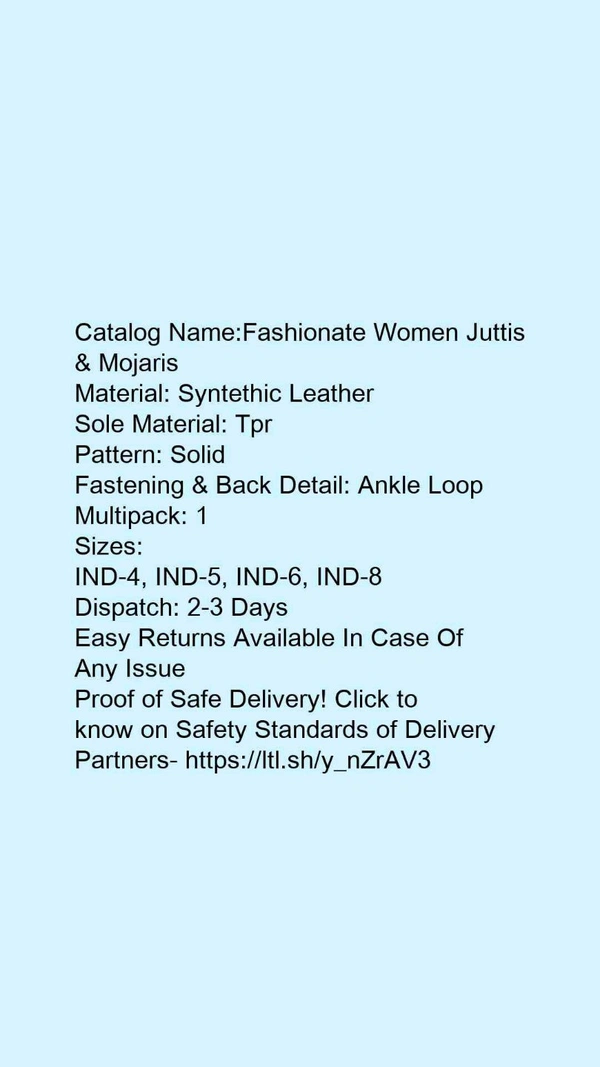 Catalog Name:*Fashionate Women Juttis & Mojaris*Material: Syntethic LeatherSole Material: TprPattern: SolidFastening & Back Detail: Ankle LoopMultipack: 1