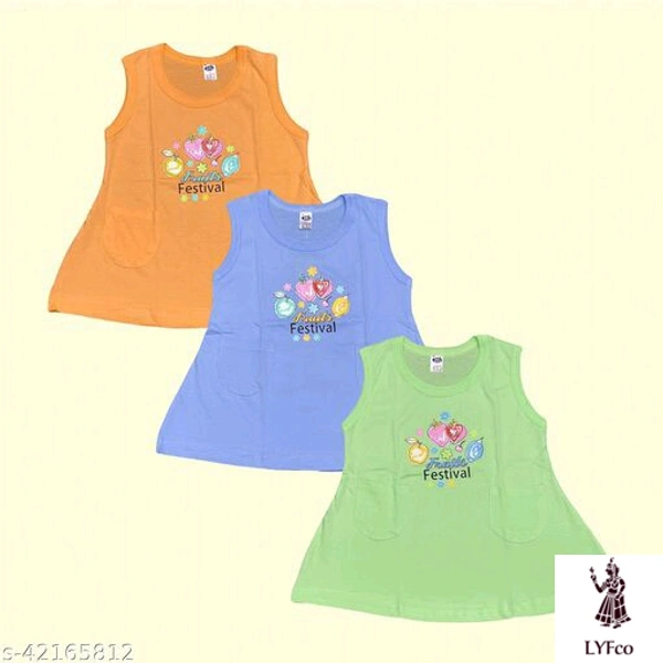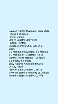 Catalog Name:*Flawsome Fancy Girls Frocks & Dresses*Fabric: CottonSleeve Length: SleevelessPattern: PrintedMultipack: Pack Of 3
