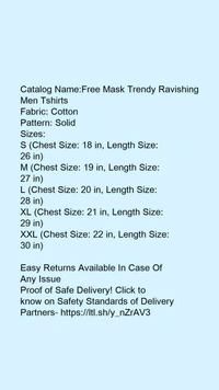 Catalog Name:*Free Mask Trendy Ravishing Men Tshirts*Fabric: CottonPattern: Solid