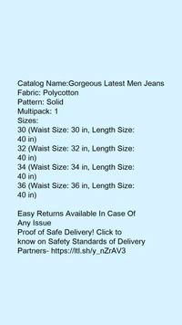Catalog Name:*Gorgeous Latest Men Jeans*Fabric: PolycottonPattern: SolidMultipack: 1