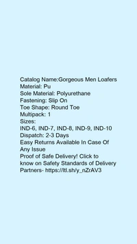 Catalog Name:*Gorgeous Men Loafers*Material: PuSole Material: PolyurethaneFastening: Slip OnToe Shape: Round ToeMultipack: 1