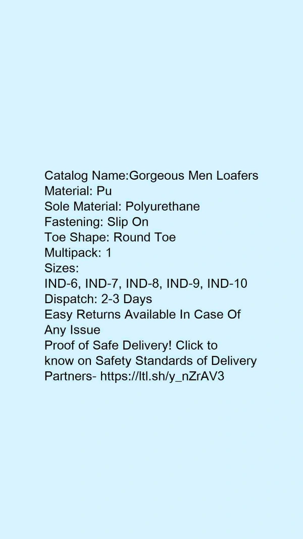 Catalog Name:*Gorgeous Men Loafers*Material: PuSole Material: PolyurethaneFastening: Slip OnToe Shape: Round ToeMultipack: 1