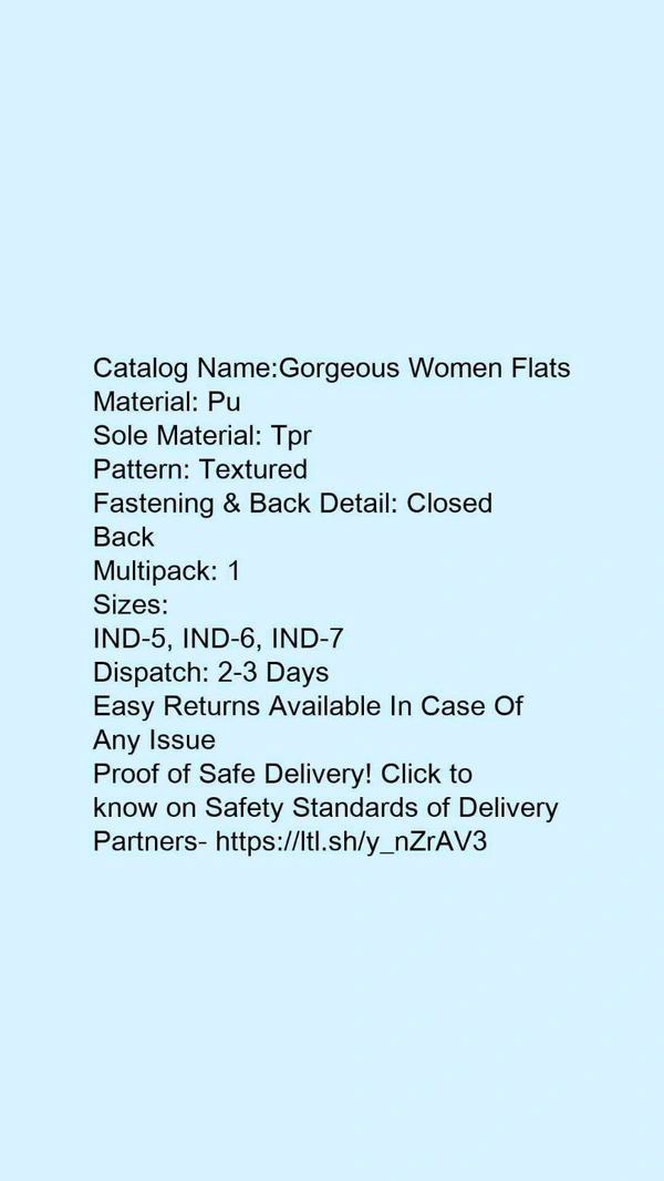 Catalog Name:*Gorgeous Women Flats*Material: PuSole Material: TprPattern: TexturedFastening & Back Detail: Closed BackMultipack: 1