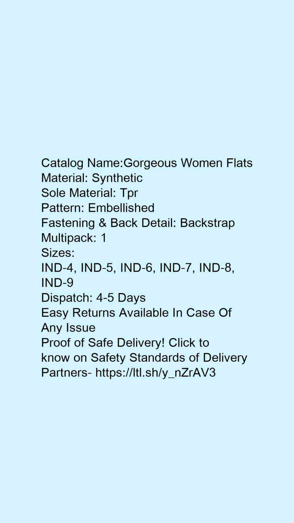 Catalog Name:*Gorgeous Women Flats*Material: SyntheticSole Material: TprPattern: EmbellishedFastening & Back Detail: BackstrapMultipack: 1