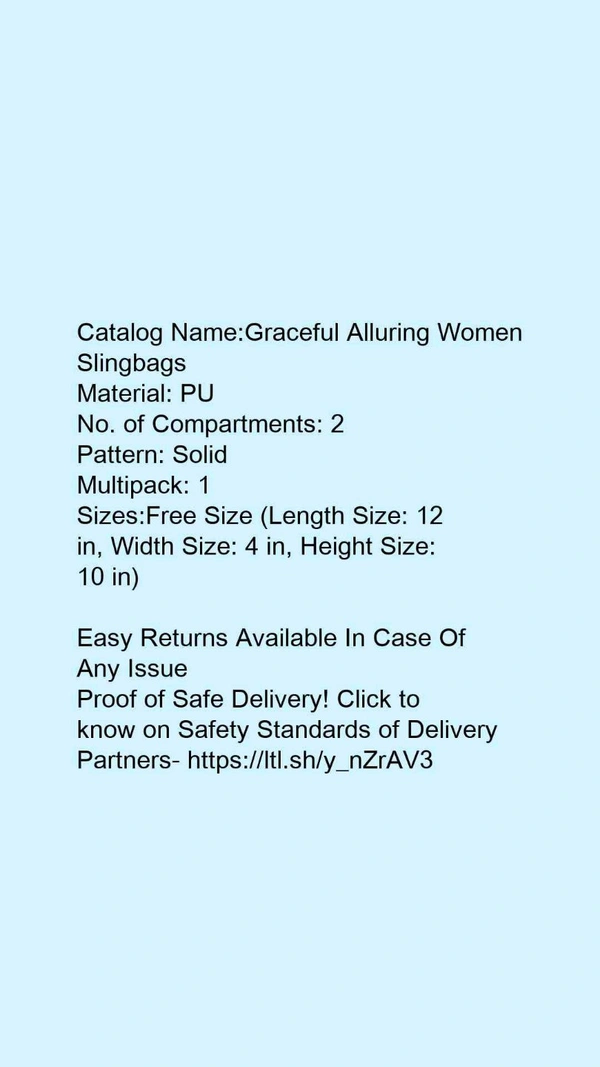 Catalog Name:*Graceful Alluring Women Slingbags*Material: PUNo. of Compartments: 2Pattern: SolidMultipack: 1
