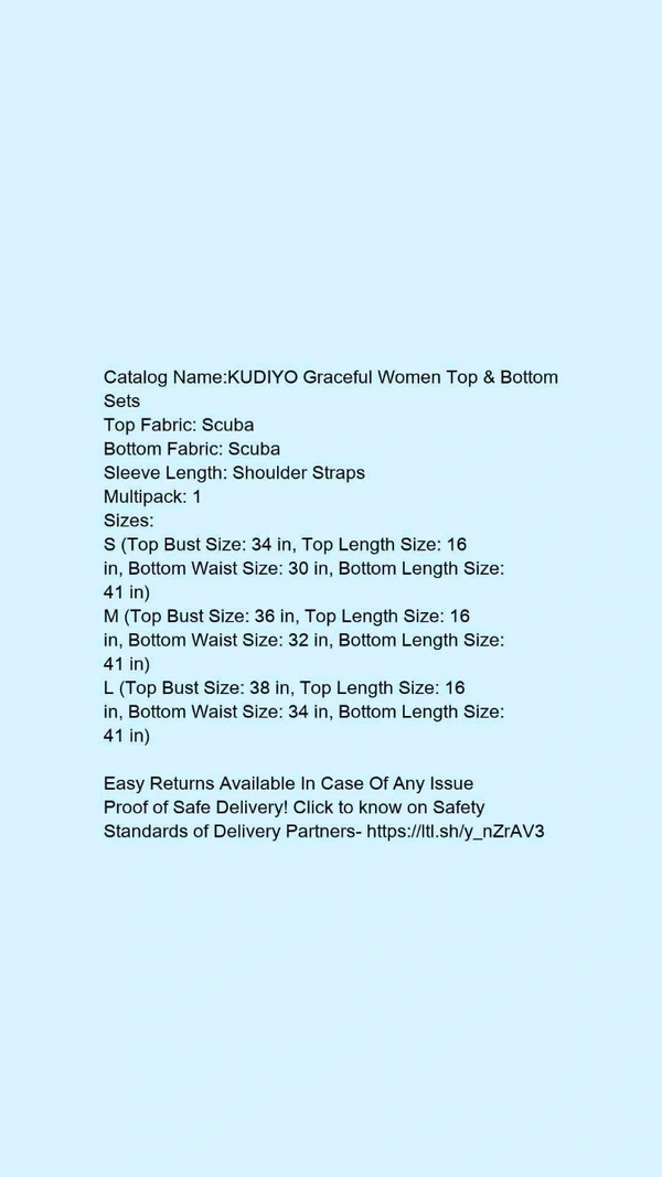 Catalog Name:*KUDIYO Graceful Women Top & Bottom Sets*Top Fabric: ScubaBottom Fabric: ScubaSleeve Length: Shoulder StrapsMultipack: 1