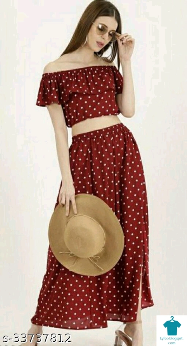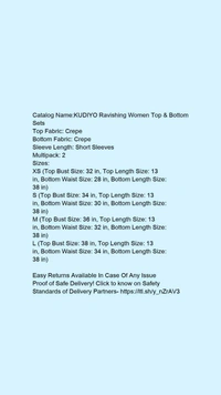 Catalog Name:*KUDIYO Ravishing Women Top & Bottom Sets*Top Fabric: CrepeBottom Fabric: CrepeSleeve Length: Short SleevesMultipack: 2
