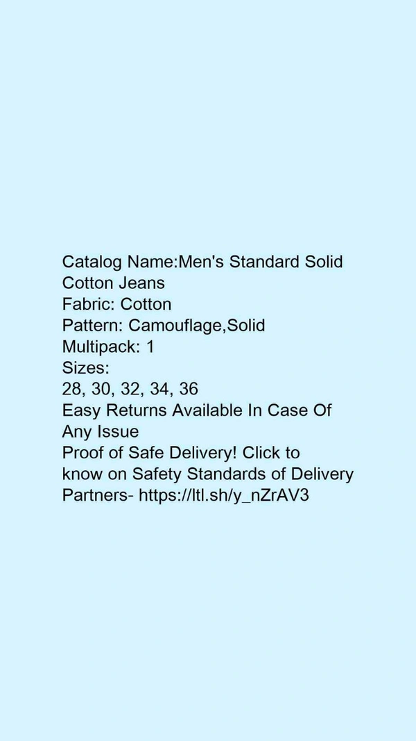 Catalog Name:*Men's Standard Solid Cotton Jeans*Fabric: CottonPattern: Camouflage,SolidMultipack: 1
