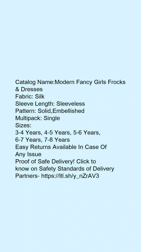 Catalog Name:*Modern Fancy Girls Frocks & Dresses*Fabric: SilkSleeve Length: SleevelessPattern: Solid,EmbellishedMultipack: Single