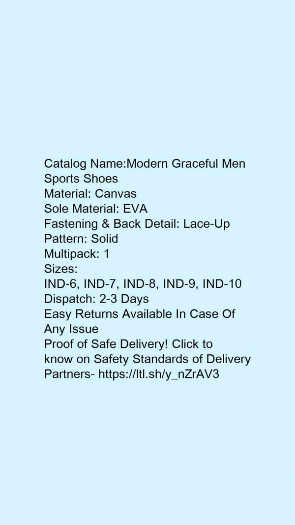 Catalog Name:*Modern Graceful Men Sports Shoes*Material: CanvasSole Material: EVAFastening & Back Detail: Lace-UpPattern: SolidMultipack: 1