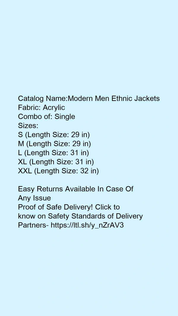 Catalog Name:*Modern Men Ethnic Jackets*Fabric: AcrylicCombo of: Single