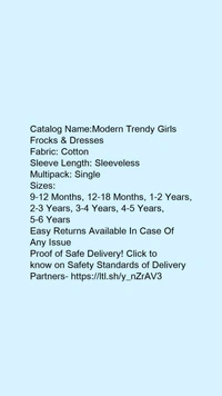 Catalog Name:*Modern Trendy Girls Frocks & Dresses*Fabric: CottonSleeve Length: SleevelessMultipack: Single