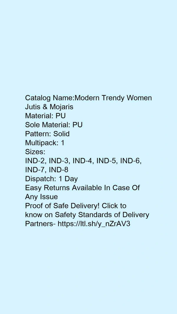 Catalog Name:*Modern Trendy Women Jutis & Mojaris*Material: PUSole Material: PUPattern: SolidMultipack: 1