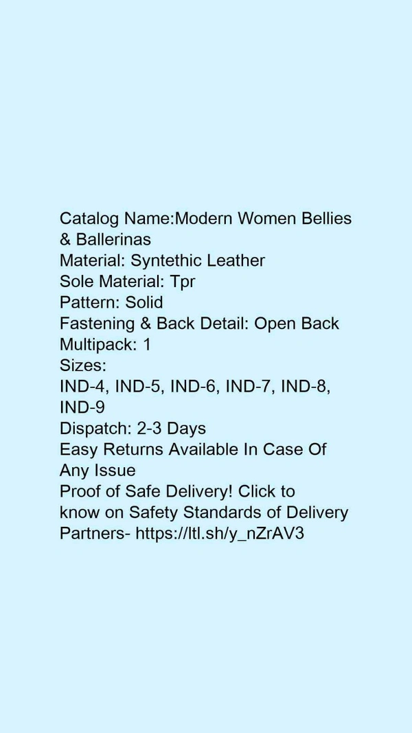 Catalog Name:*Modern Women Bellies & Ballerinas*Material: Syntethic LeatherSole Material: TprPattern: SolidFastening & Back Detail: Open BackMultipack: 1