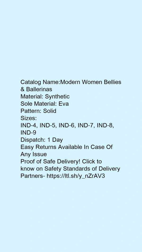 Catalog Name:*Modern Women Bellies & Ballerinas*Material: SyntheticSole Material: EvaPattern: Solid