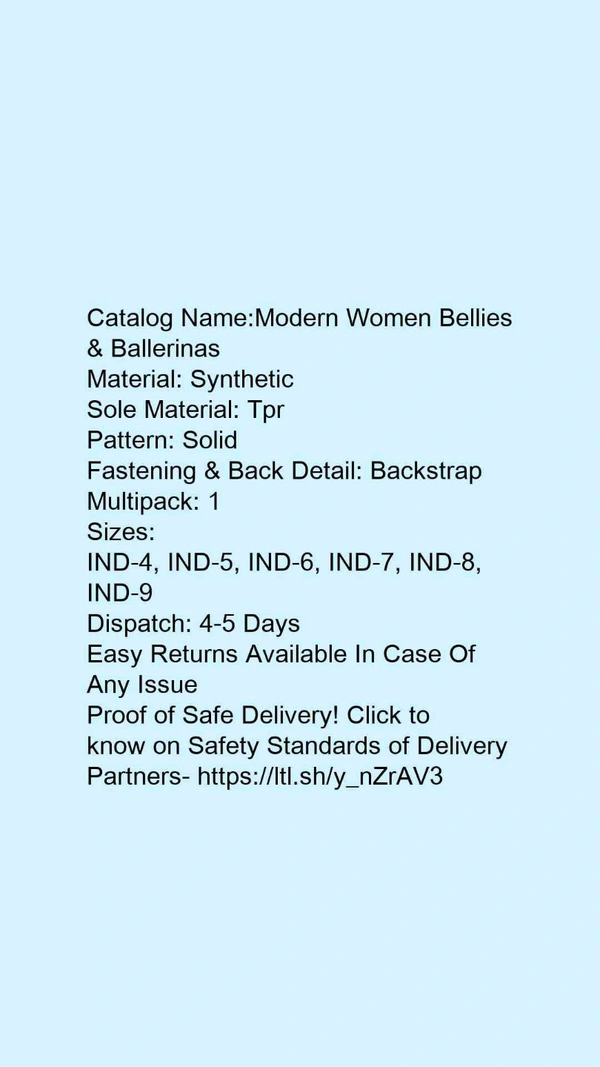 Catalog Name:*Modern Women Bellies & Ballerinas*Material: SyntheticSole Material: EvaPattern: Solid