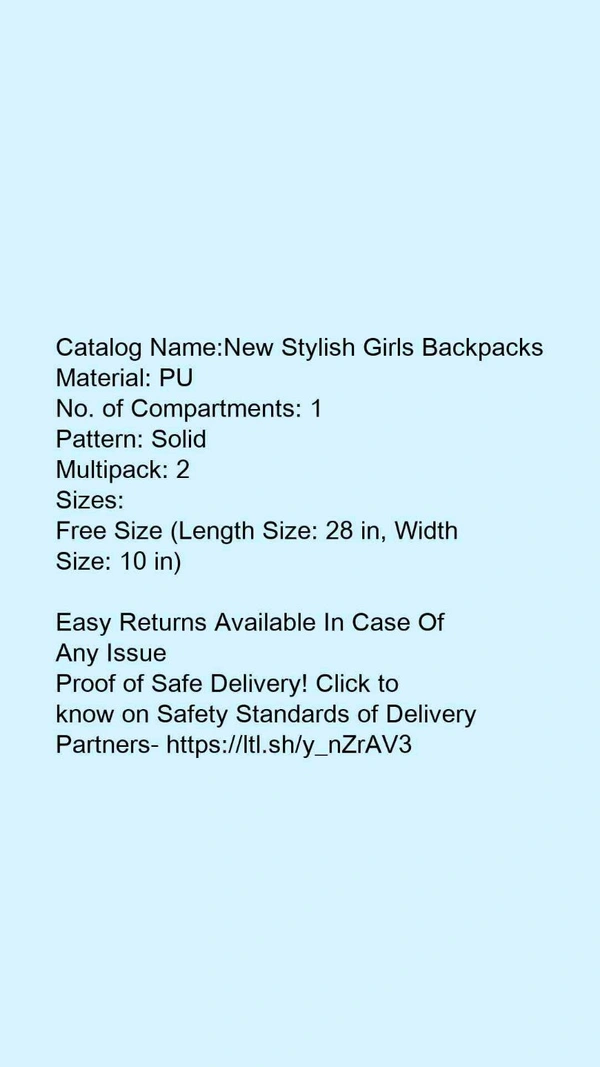Catalog Name:*New Stylish Girls Backpacks*Material: PUNo. of Compartments: 1Pattern: SolidMultipack: 2