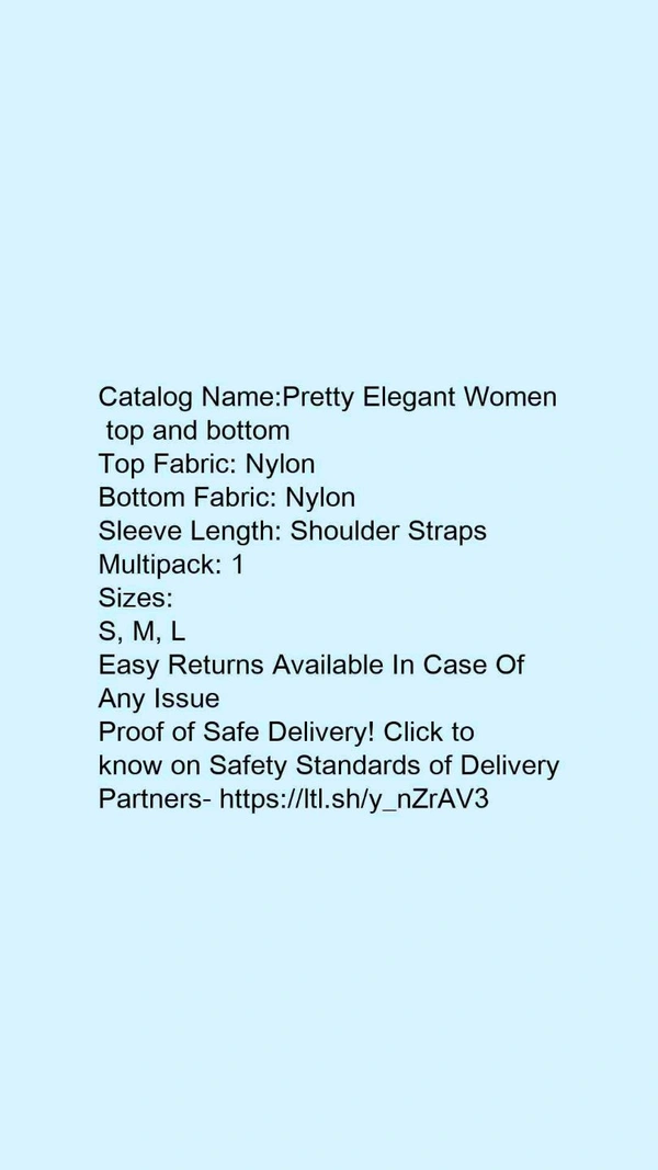 Catalog Name:*Pretty Elegant Women top and bottom*Top Fabric: NylonBottom Fabric: NylonSleeve Length: Shoulder StrapsMultipack: 1