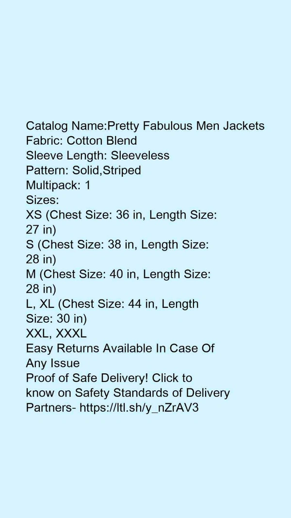Catalog Name:*Pretty Fabulous Men Jackets*Fabric: Cotton BlendSleeve Length: SleevelessPattern: Solid,StripedMultipack: 1
