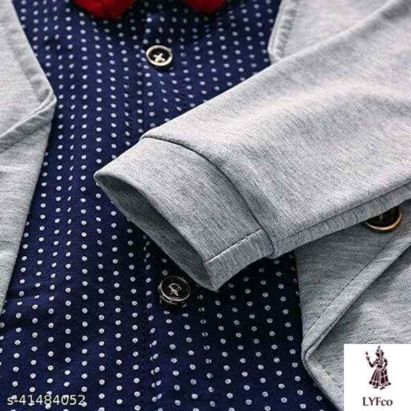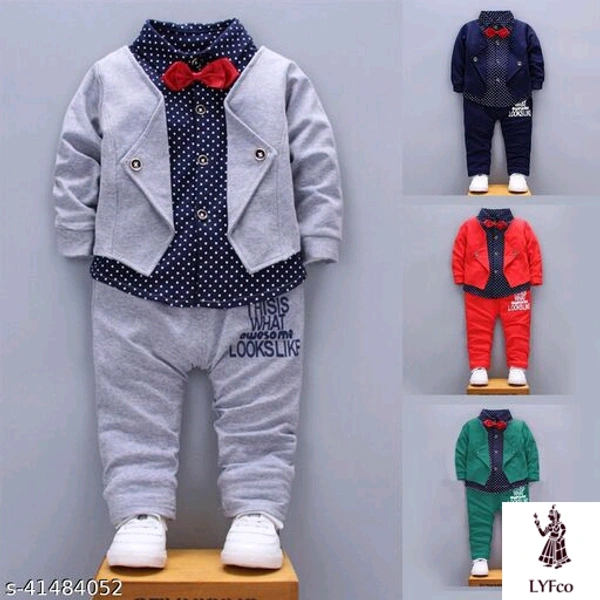 Catalog Name:*Pretty Funky Boys Top & Bottom Sets*Top Fabric: Hosiery CottonBottom Fabric: Hosiery CottonSleeve Length: Long SleevesTop Pattern: Self DesignBottom Pattern: Self-DesignMultipack: SingleAdd-Ons: Bow Tie