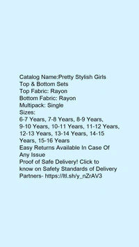 Catalog Name:*Pretty Stylish Girls Top & Bottom Sets*Top Fabric: RayonBottom Fabric: RayonMultipack: Single