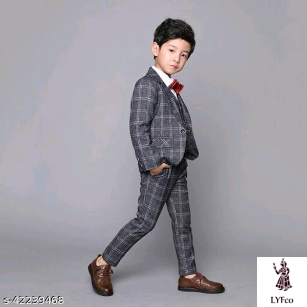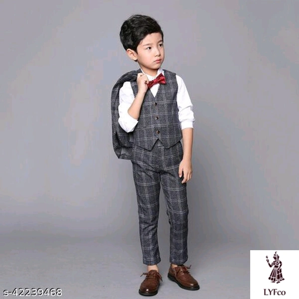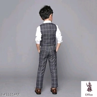 Hopscotch Boys Polyester Fiber Cotton Checked Applique Bow Shirt Waistcoat and Pant Set with Blazer in Gray Color (709512) Top Fabric: Polycotton Bottom Fabric: Polycotton Sleeve Length: Long Sleeves Top Pattern: Checked Bottom Pattern: Checked Multipack: Single Add-Ons: Bow Tie Sizes: 4-5 Years, 5-6 Years, 10-11 Years, 3-4 Years, 6-7 Years, 7-8 Years, 9-10 Years A must have from our collection! We make sure your kids look stylish & cute while still being comfortable.Sort their Outfit with us. It's time to update your little ones wardrobe with something charmingly trendy. If they got it, let'em flaunt it! Country of Origin: China