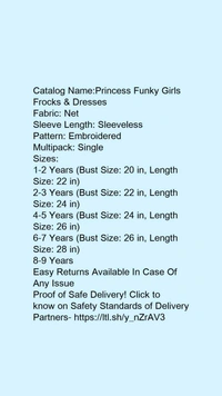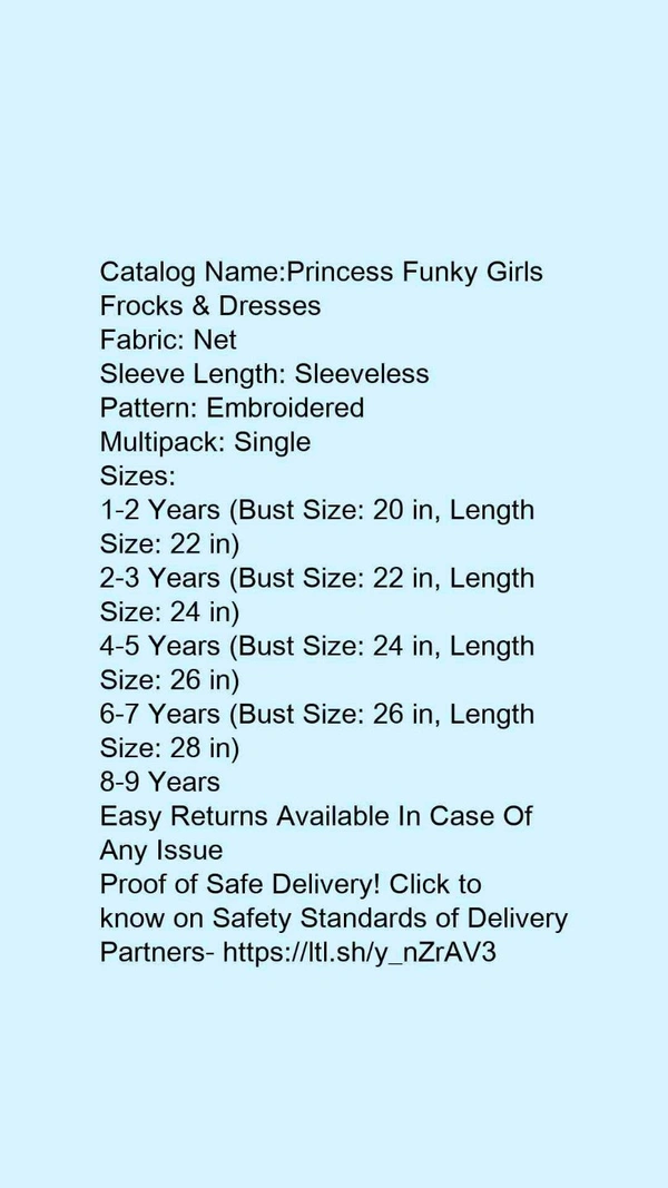 Catalog Name:*Princess Funky Girls Frocks & Dresses*Fabric: NetSleeve Length: SleevelessPattern: EmbroideredMultipack: Single